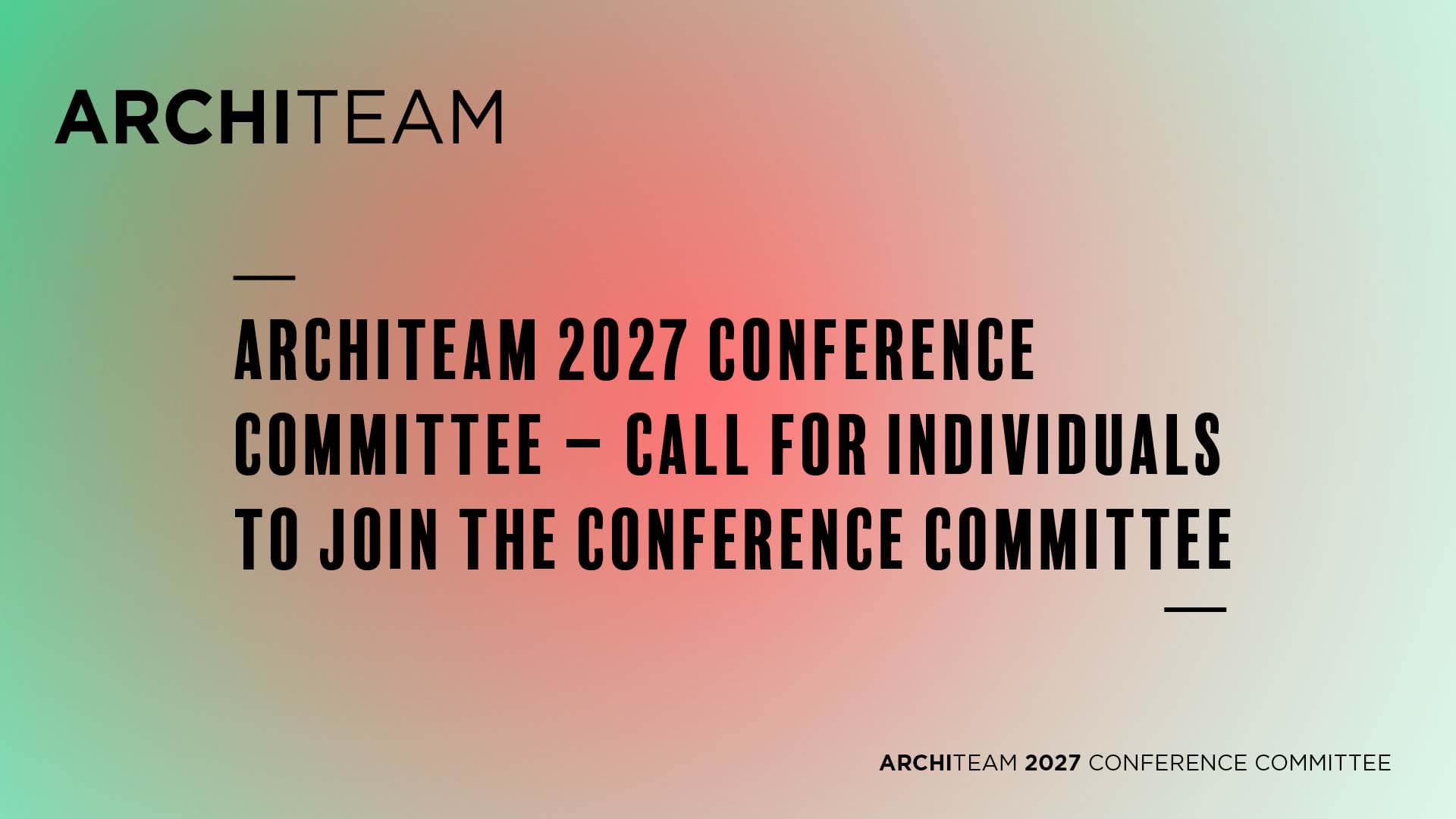 For 2027, we’re looking for passionate ArchiTeam members to join the Conference Committee and help create a program that is bold, engaging, and relevant. Read more...