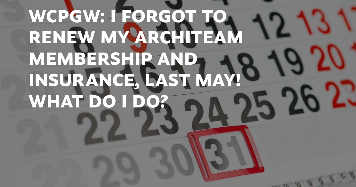 I’ve just realised that I forgot to renew my ArchiTeam membership and insurance, last May! What do I do? Read more...
