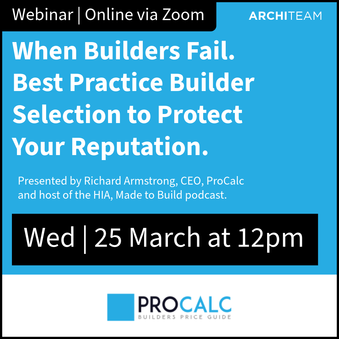 This CPD webinar introduces a structured, best-practice builder selection methodology using independent data and practical vetting tools to help architects assess builders with far greater confidence — before appointment.