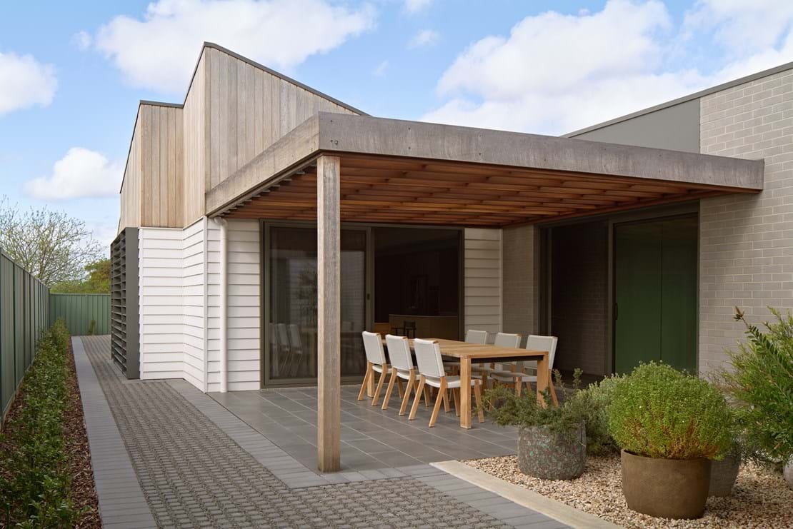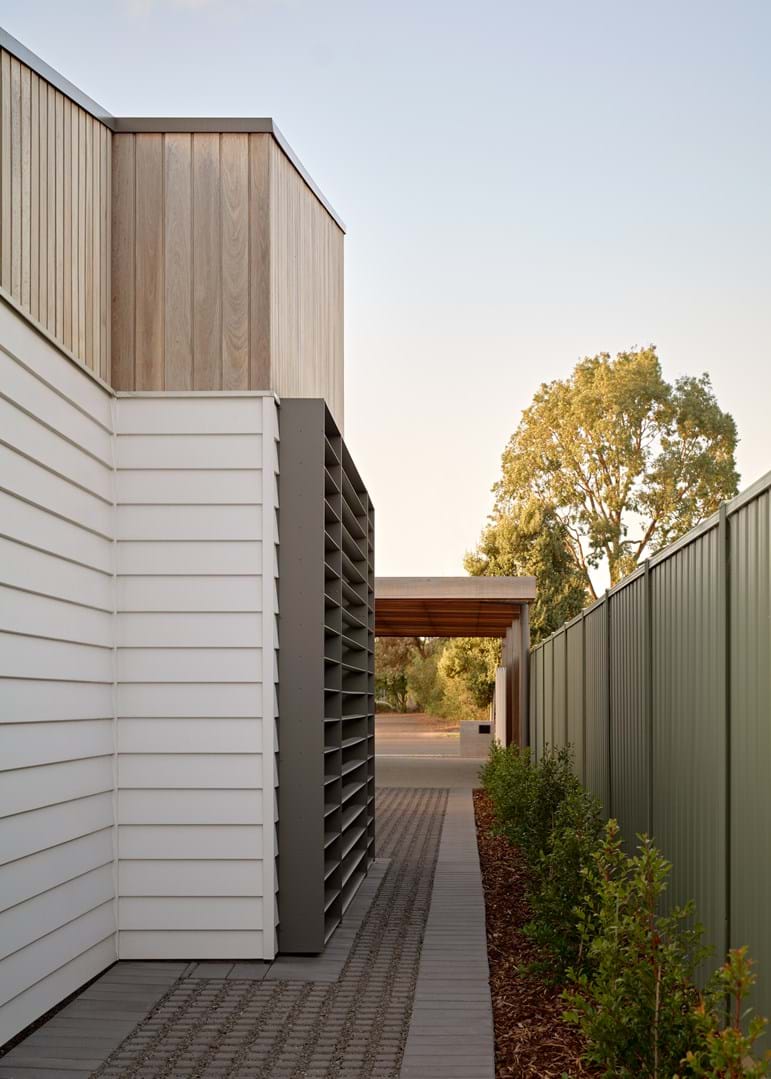 Horsham House is underpinned by an ambition to create a timeless, curated home that draws on both local architectural heritage and personal memory. While situated in the centre of Horsham within a predominantly civic setting, the design takes cues from the Wimmera’s rural farmhouses—particularly their wide verandas and sheltered outdoor spaces—reinterpreting these qualities for contemporary urban living.